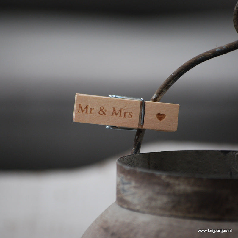 Op Knijpertjes.nl vind je alles op het gebied van houten wasknijpers. Onze grote houten wasknijpers en kleine wasknijpertjes zijn erg geschikt als origineel bedankje. We hebben voor iedere branche wel een passende houten knijper. De knijpers van Knijpertjes zijn altijd uit hout geproduceerd en in combinatie met de draadstaal veer vormen de houten knijpers van Knijpertjes een oersterk geheel. Onze originele bedankjes, souvenirs en unieke relatiegeschenken kunnen bewerkt worden met een gravure of bedrukking naar wens, bijvoorbeeld een pakkende tekst of het logo van je bedrijf. Gebruik onze houten knijpers als gepersonaliseerd promotioneel product zodat ook jouw bedrijf dagelijks in de picture staat en je zo heel eenvoudig je naamsbekendheid vergroot.